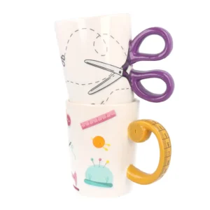 Šis nuostabus keramikinis puodelis 400ml tiks kiekvienai! Taip pat puiki idėja dovanai 🙂 Puodelis pagamintas iš aukštos kokybės keramikos ir papuoštas spalvingais siuvimo/mezgimo priemonių elementais.
